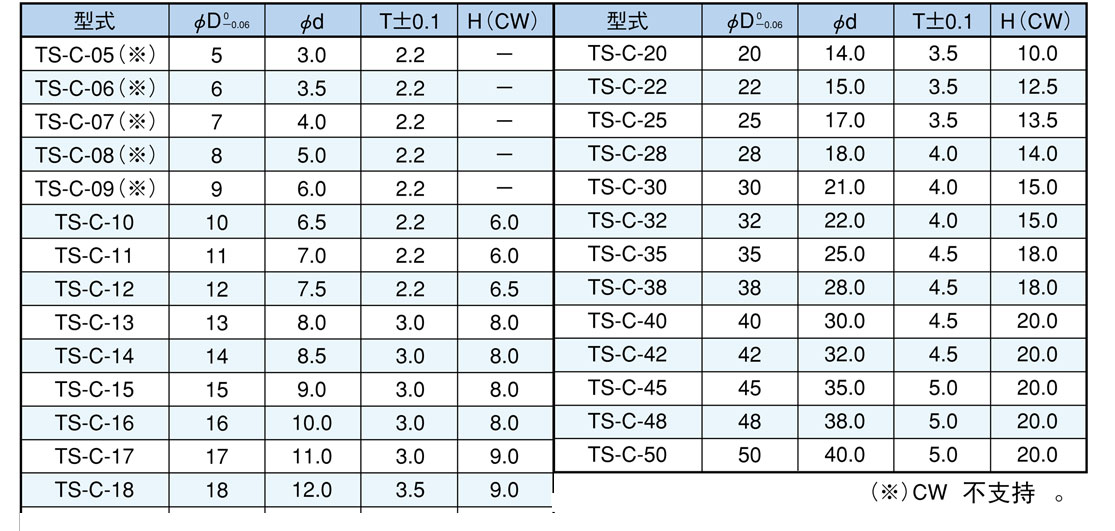 外径范围从φ5mm至φ50mm。